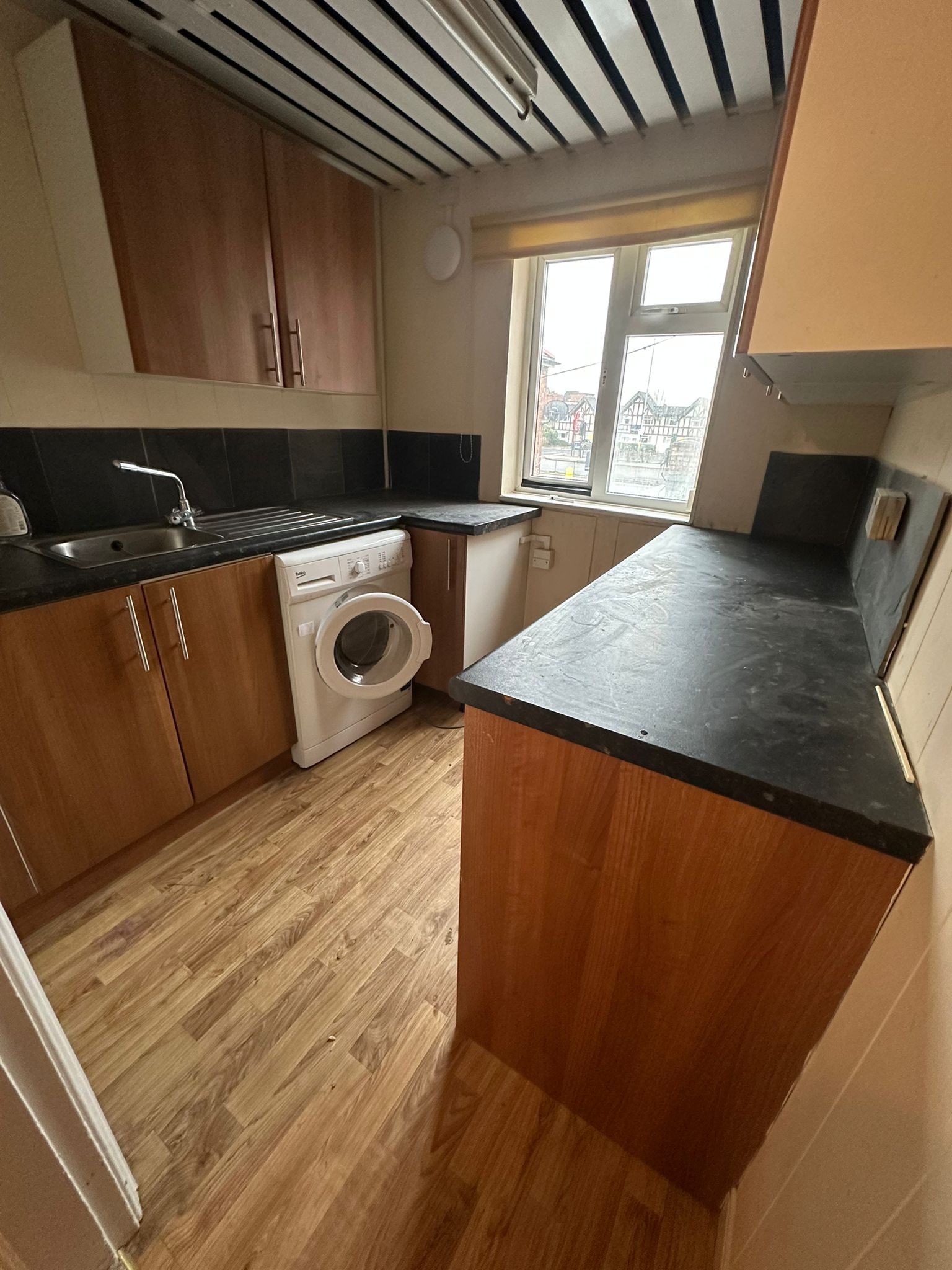 Open‑Plan Living/Kitchen Area – A bright living space combined with a modern kitchen. The kitchen features fitted units and integrated appliances such as hob, oven, fridge/freezer and washer/dryer (appliances may vary). The layout creates a versatile space for relaxing and dining.